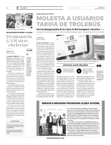 Las acciones, informó el fun- de movilidad, que se presentó co- México, la tarifa será de 13 pesos. ejemplo, que no se acepten tar-