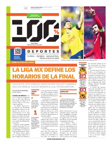 único obstáculo será el Toluca. neos corto, esta será la pri- de competencia del futbol 34 puntos producto de sus