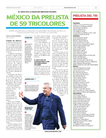 tro del Grupo A junto a Costa quier otra competencia en ve- El Vasco admitió que Mé- Alexis Gutiérrez (Cruz Azul)