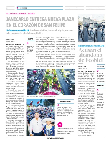 Felipe de Jesús, un kilómetro • Este “Sendero de Paz, Ecobici solo repare 300 bi- tructurales