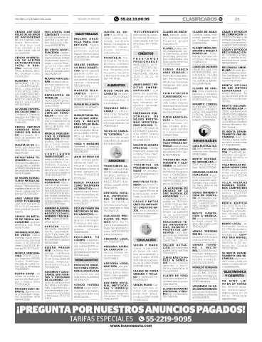 VIERNES 23 DE MAYO DE 2025 CIUDAD DE MÉXICO 55.22.19.90.95 CLASIFICADOS B! 23