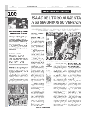DE FRONTENIS ocasión no terminó dentro de ● Isaac del Toro mantiene el ritmo y fuerza para seguir de líder en el Giro