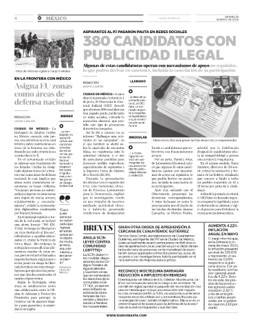 nado algunas zonas de la fron- las leyes la Suprema Corte de Justicia diante publi- daturas operan con mecanis- tir, criticó la saturación y for-