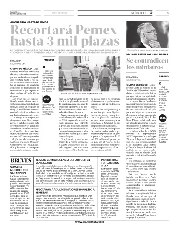 LA REESTRUCTURACIÓN PROPONE DESAPARECER UNA DIRECCIÓN GENERAL, 10 SUBDIRECCIONES, 7 • Se volvió a amparar para no pagar impuestos