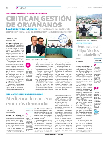 políticas y además de tener pers- 20 lencia, Orvañanos aceptó des- día, impide una ágil movilidad.