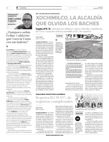 en el Gobierno de México durante las se han elaborado 472 denuncias • La demarcación está llena de baches