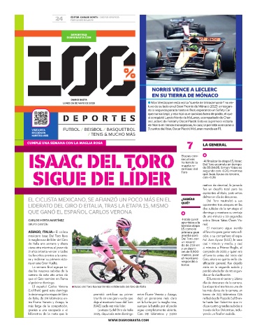 ISAAC DEL TORO Etapas con- •Al finalizar la etapa 15, Isaac