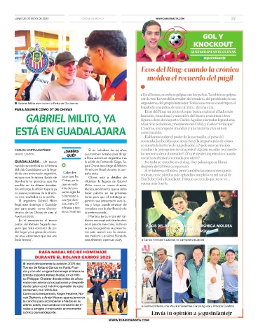 ● Gabriel Milito aterrizó en la Perla de Occidente organismo, del propio boxeador. Todas esas voces construyen el