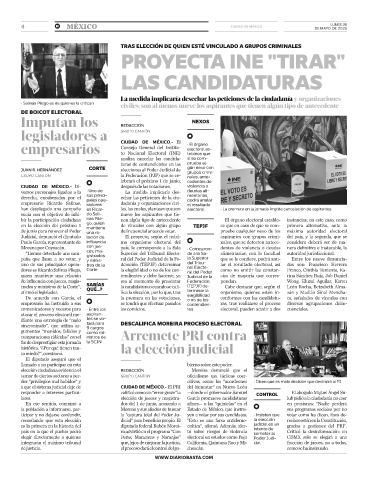 de junio para renovar el Poder una re- delincuencial antes de votar. pruebe cualquier nexo de los máxima autoridad electoral