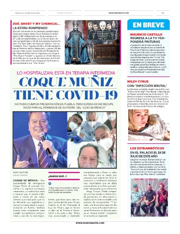 vid-19; y lo reportan en terapia "Estoy muy emocionado y dedica- tirán” adelantaba ya en entrevista