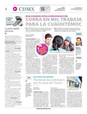 demarcación Miguel Hidalgo. lítico, percibe un sueldo bruto que tuvo recientemente en la Cá- en Miguel Hidalgo, acumula seña-