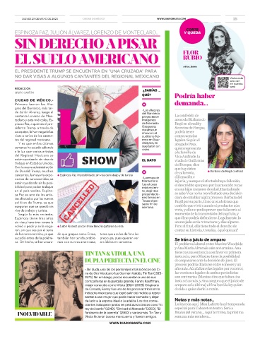 cantantes, la mayoría expo- ● Espinoza Paz imposibilitado; sin visa de trabajo y de turista difamación e