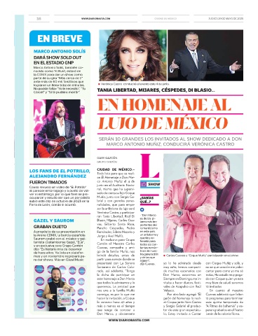 mas y en noviembre regresará pa- brindó detalles, antes de y de las que ● Carlos Cuevas y "Coque Muñiz" participarán en el show.