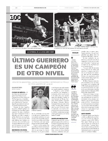 ÚLTIMO GUERRERO • El Últi- alumnos y porque la lucha le ha