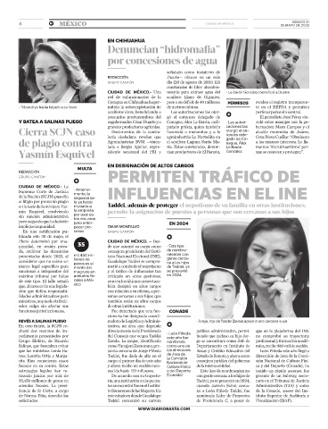 Y BATEA A SALINAS PLIEGO exgobernador César Duarte y a Conagua, Álex Le Barón, exdi- • Las autori- culó estos manejos con la go-