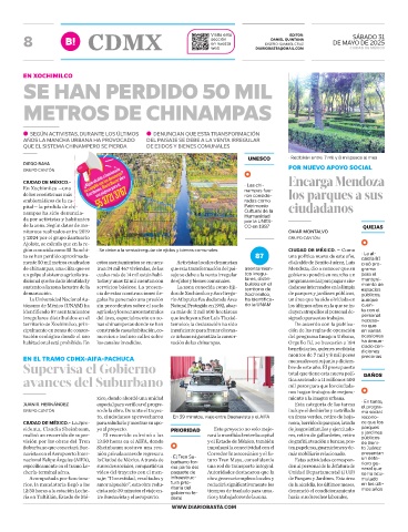 de chinampas, una cifra que es tran 24 mil 467 viviendas, de las que esta transformación del pai- asentamien- Mendoza, dio a conocer que su grama
