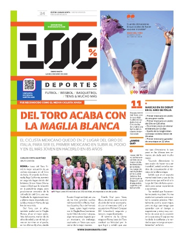EL CICLISTA MEXICANO QUEDÓ EN 2° LUGAR DEL GIRO DE ¿SABÍAS • Primer mexicano ganador