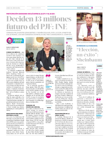 266), el INE reportó una partici- sufragios (3.89%) y Liliana Her- (3.94%) de de 7.9 millones de electores ca- Judicial, que “algunos defien-