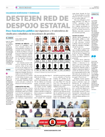 dad en la co- 300, Sindicato 22 de Octubre y Entre los detenidos destacan tomar posesión de inmuebles. entre servidores públicos y cri-