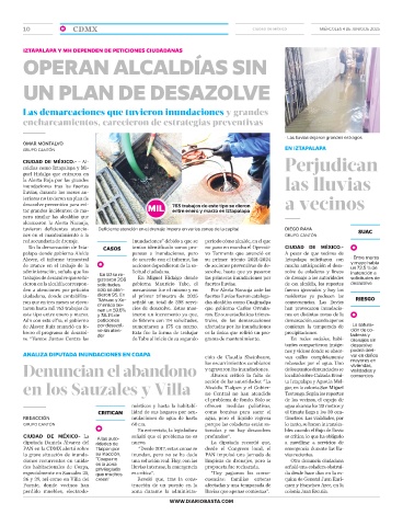 ron que en tres meses se ejecu- Tláhuac y Xo- señaló un total de 398 servi- das alcaldías como Cuajimalpa consecuencias. Las lluvias