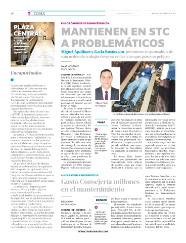 a reporteros. Lo más alarmante, de sección en la Línea B, y Mi- Metro, Guillermo Calderón. cional de Trabajadores del STC