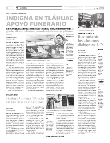 el gobierno local en los últimos servicios funerarios en Tláhuac, mientos de operación, esta ac- (IPN), ubicado en Mar Medite- alumnos