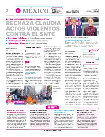 ● Enfatizó que la CNTE debe asumir o deslindarse DESTACA RELACIÓN DE RESPETO CON TRUMP