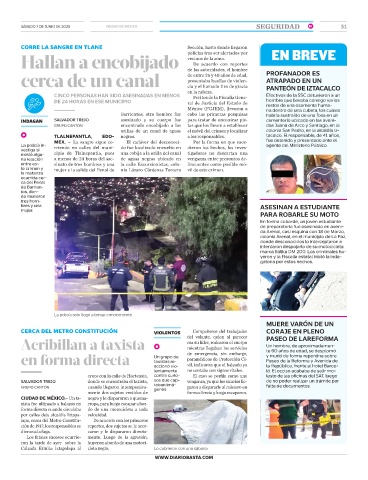 CINCO PERSONAS HAN SIDO ASESINADAS EN MENOS Peritos de la Fiscalía Gene- Efectivos de la SSC detuvieron a un