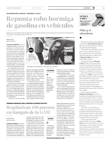 mañana, principalmente en (19%); Venustiano Carranza • En zo- cional, el robo de combustible de los malos tratos que han