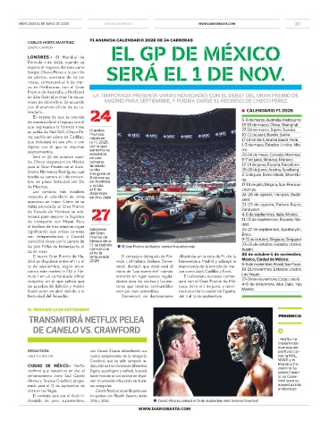las 500 Millas de Indianápolis, el F1 se habrán ● El Gran Premio de México renovó tres años más 23-25 de octubre, Estados Unidos,