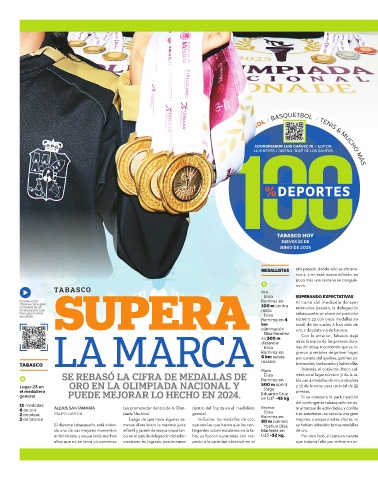 El deporte tabasqueño, está vivien- manas diera inicio la máxima justa que son las que hacen que los con- • Yoshua Díaz se habían obtenido tantas medallas