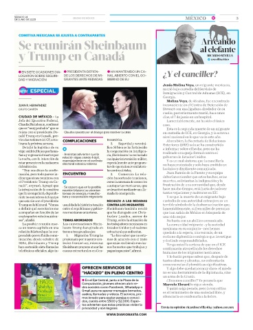 prendido por su fluida comu- 1. Migración: Trump ha “Le hice saber que no esta- reclamo diplomático enérgico que investigue