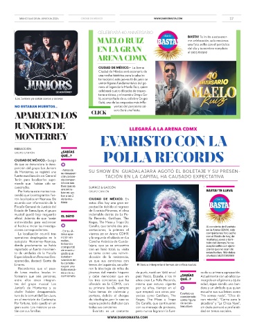 de Monterrey, se registró una • Antes de SU SHOW EN GUADALAJARA AGOTÓ EL BOLETAJE Y SU PRESEN-