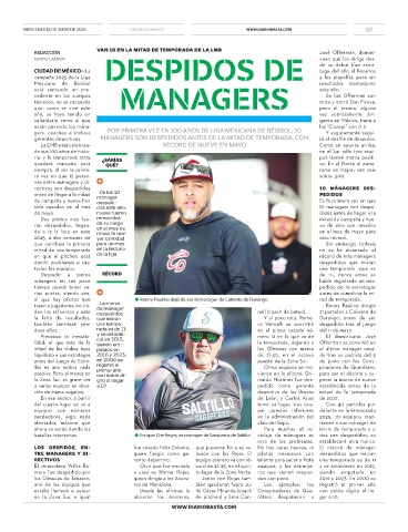 TRE MANAGERS Y DI- quien fungía como ge- lación con los Rojas. El pilotos mexicanos con despedidos que inician