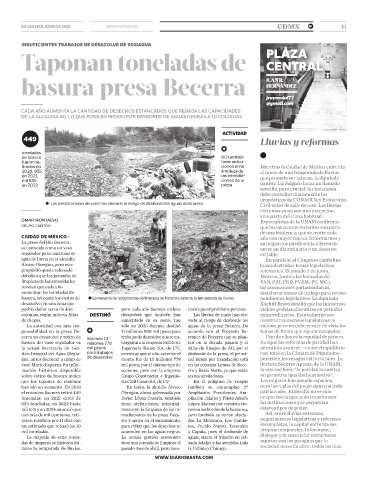 La autoridad con más res- sólo en 2023 Sacmex destinó aguas de la presa Becerra. De valioso, pero no debe perder de vista los