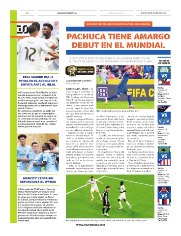 de ser real. ● El equipo austriaco del Salzburgo fue dominado por el Pachuca, pero anotó mas goles TV: DAZN
