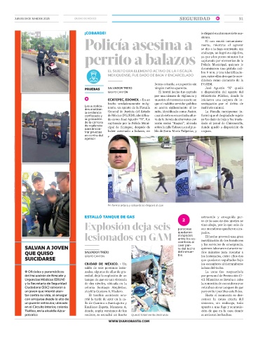 de vigilancia cipal de Ecatepec, después de sobre la calle Tabasco, en el pue- donde quedó a disposición de