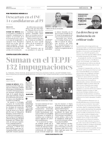 hasta el 28 de agosto para so- tección de los derechos políti- llevaremos ante INE el expe- provocan rechazo entre el pueblo. Llevan