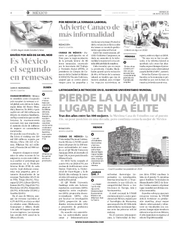 dólares en remesas familiares, demos- Tras dos años entre las 100 mejores, la Máxima Casa de Estudios cae al puesto