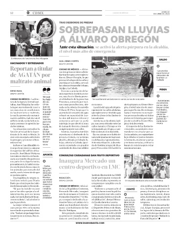 función principal de la depen- la due- Además, locatarios también bién se denunció su desborde. mendaron no circular por ca-