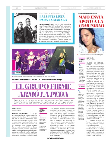 de sus dos fechas y en la víspera del Gay de Grupo Firme tocó por más de tres ho- estrés, la cantante ya se en-