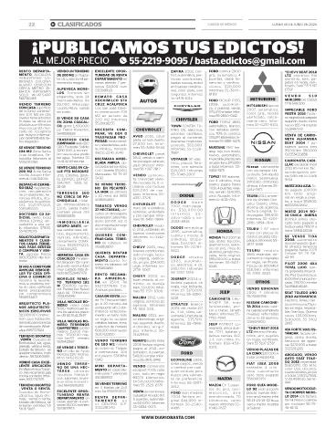 22 B! CLASIFICADOS CIUDAD DE MÉXICO LUNES 30 DE JUNIO DE 2025