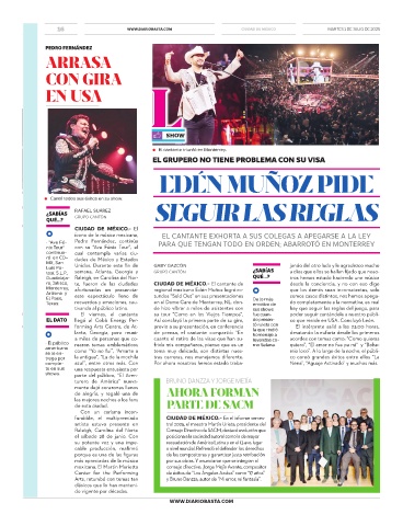 Monterrey, afortunadas en presenciar regional mexicano Edén Muñoz logró ro- que los demás sean inconscientes, solo