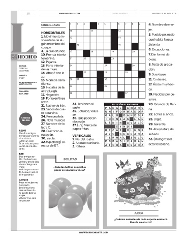 21. Nativo de Irán. 34. Te vienes al SOLUCIÓN AL ANTERIOR 20. Oriunda de Ber-