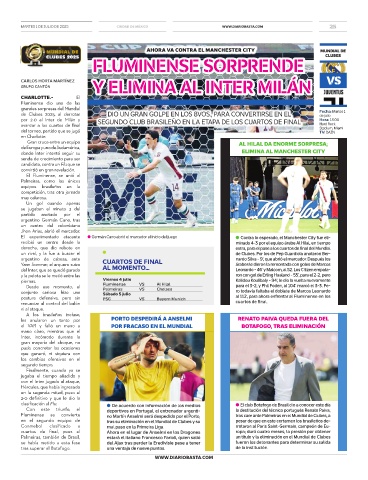 por 2-0 al Inter de Milán y SEGUNDO CLUB BRASILEÑO EN LA ETAPA DE LOS CUARTOS DE FINAL Hora: 13:00