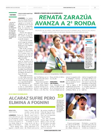 • Renata Za- Wimbledon, tercer Grand AVANZA A 2ª RONDA