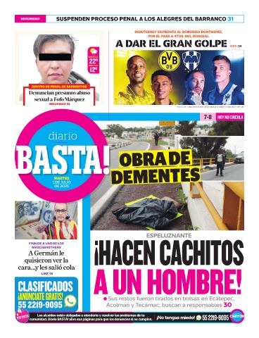 comunidad. Diario BASTA! abre sus páginas para que los denuncies si no cumplen. ¡No tengas miedo! 5 5 2 21 9 - 909 5