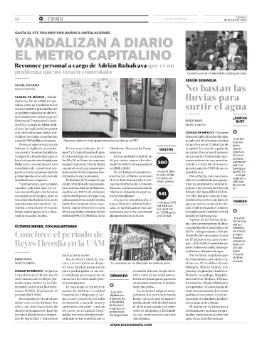 a más de 500 millones de pesos. • Rayones, daños y más aparecen todos los días en el STC se aplicará en diversas colonias • Las llu-