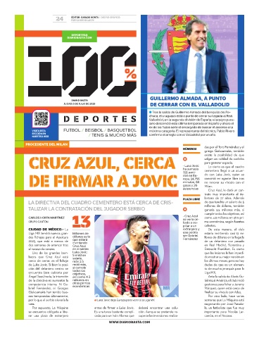por lo que el serbio elevaría la ● Luka Jovic deja Europa para venir a la Liga MX semanas que La Máquina está