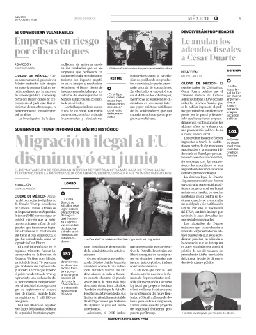 México enfrenta más riesgos vo en su imagen y reputación. tos o servicios, lo que ha provo- CIUDAD DE MÉXICO.- El